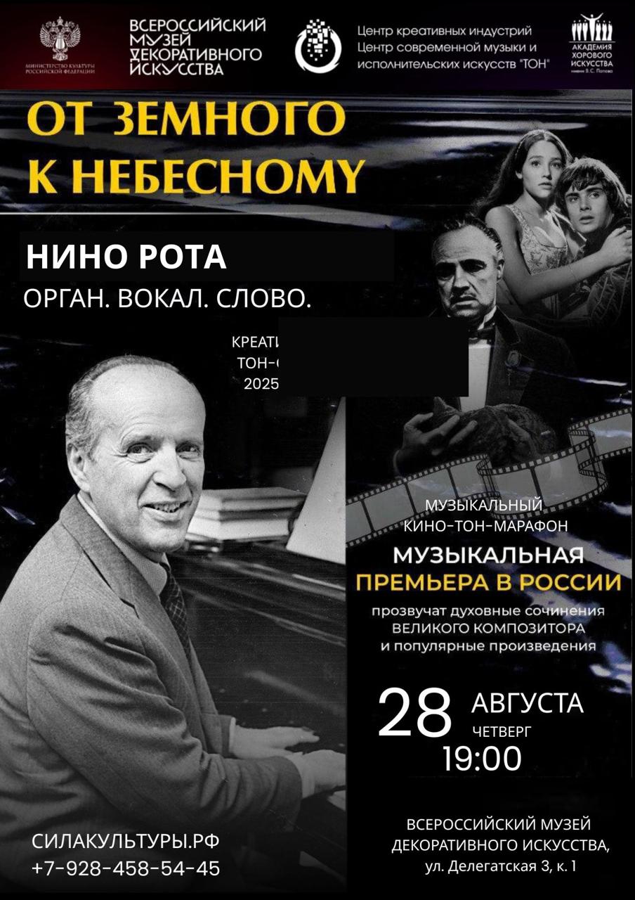 Не упустите возможность открыть для себя нового Нино Роту и насладиться неповторимым вечером в пространстве, где традиции декоративного искусства встречаются с безграничной гармонией музыки!
